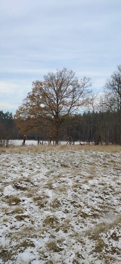 teren płaski, częściowo porośnięty drzewami i krzewami,